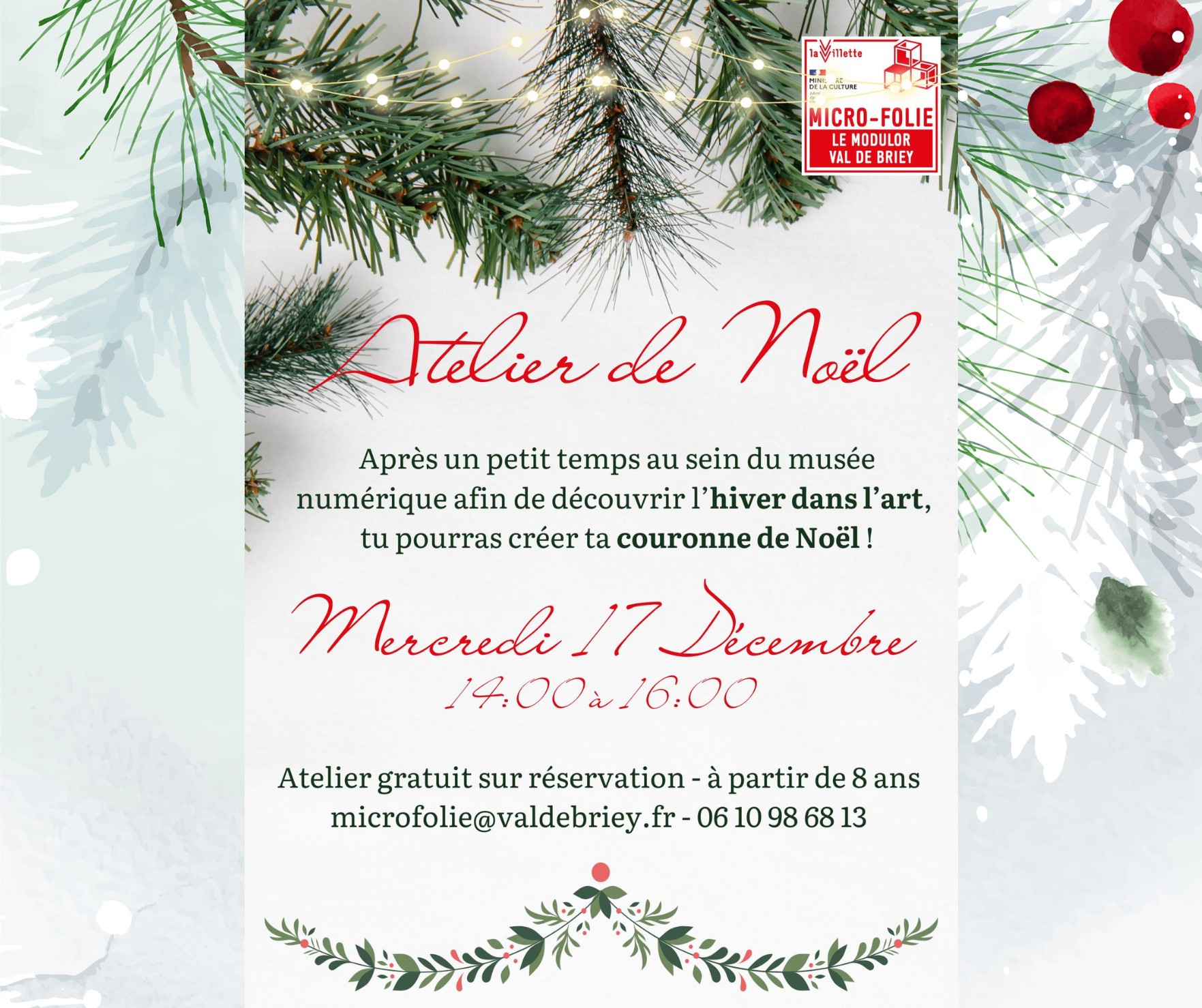 Atelier de Noël à la Micro-Folie à partir de 8 ans. Gratuit. Sur réservation : 06 10 98 68 13 - microfolie@valdebriey.fr