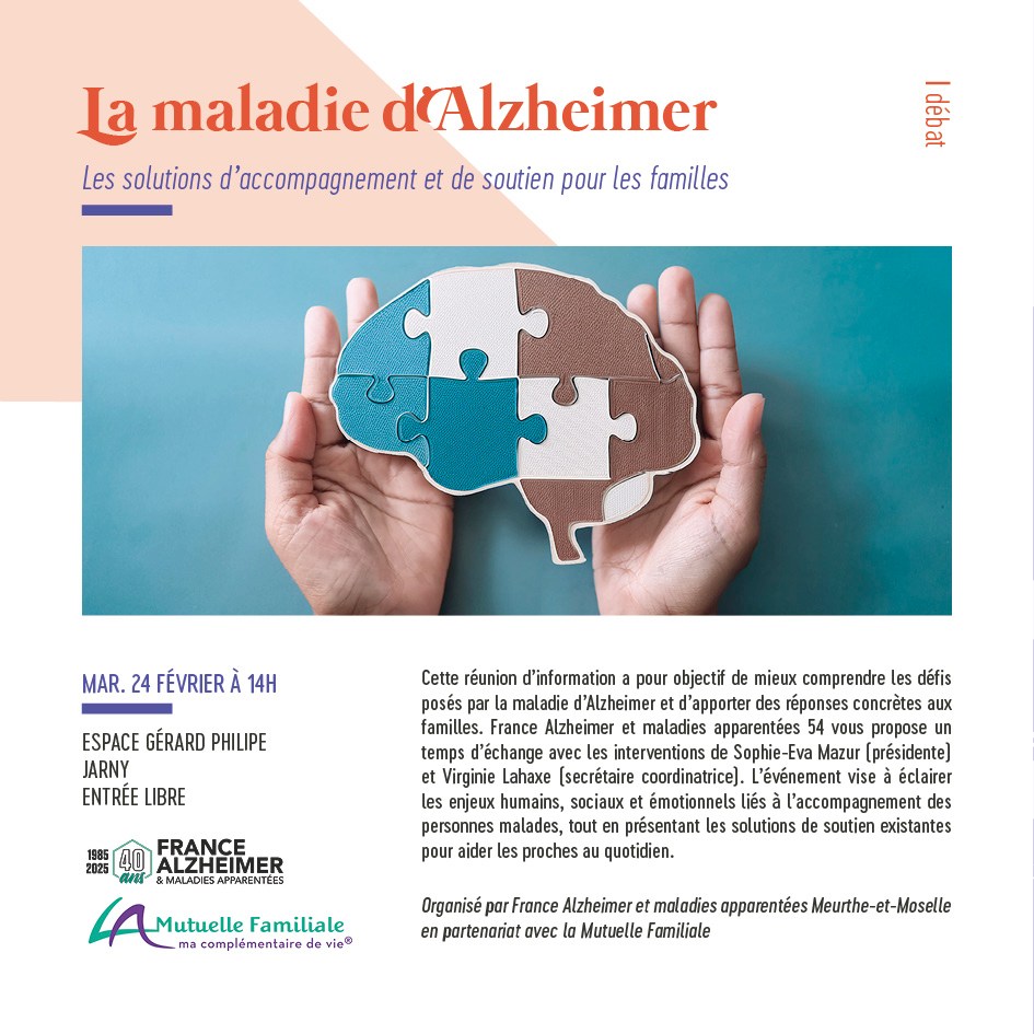 Dans le cadre du festival des rencontres sociales en partenariat avec la Mutuelle Familiale, conférence « Les solutions d’accompagnement et de soutien pour les familles », animée par France Alzheimer. Entrée libre.