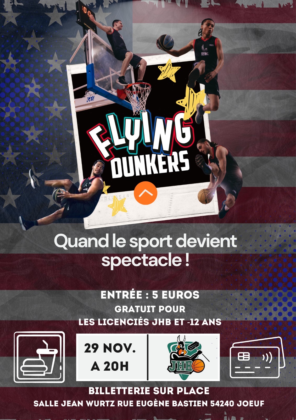 Joeuf Homécourt Basket vous propose un show basket avec les Flying Dunkers Entrée 5 €. Gratuit pour les licenciés JHB et -12 ans Billetterie sur place