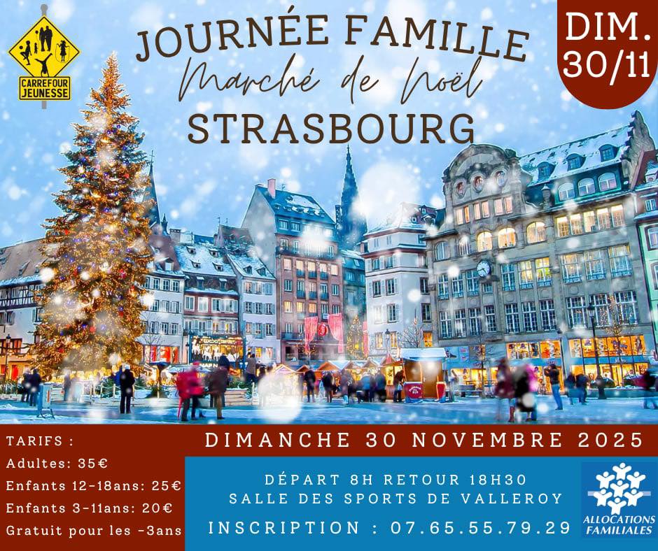 Carrefour Jeunesse vous invite à une journée familiale exceptionnelle à la découverte du plus célèbre marché de Noël de France, le dimanche 30 novembre 2025.