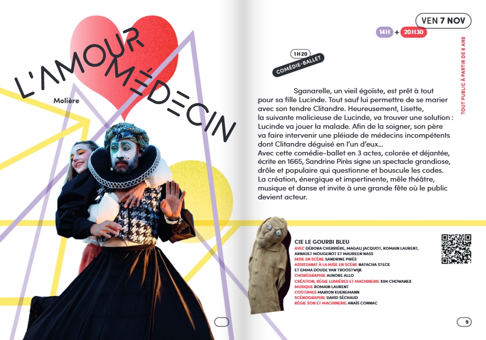 Avec cette comédie-ballet en 3 actes, colorée et déjantée, écrite en 1665, Sandrine Pirès signe un spectacle grandiose, drôle et populaire qui questionne et bouscule les codes. Deux horaires : 14h et 20h30 Tarif plein : 13€ Tarif réduit : 6€ (moins de 18 ans, demandeurs d'emploi et bénéficiaires des minimas sociaux) Pass famille : 15€ (1 adulte + 1 enfant) Abonnement adulte : 30€ (3 spectacles au choix ; 10€ le spectacle supplémentaire) Photo : Jean-Jacques Belle