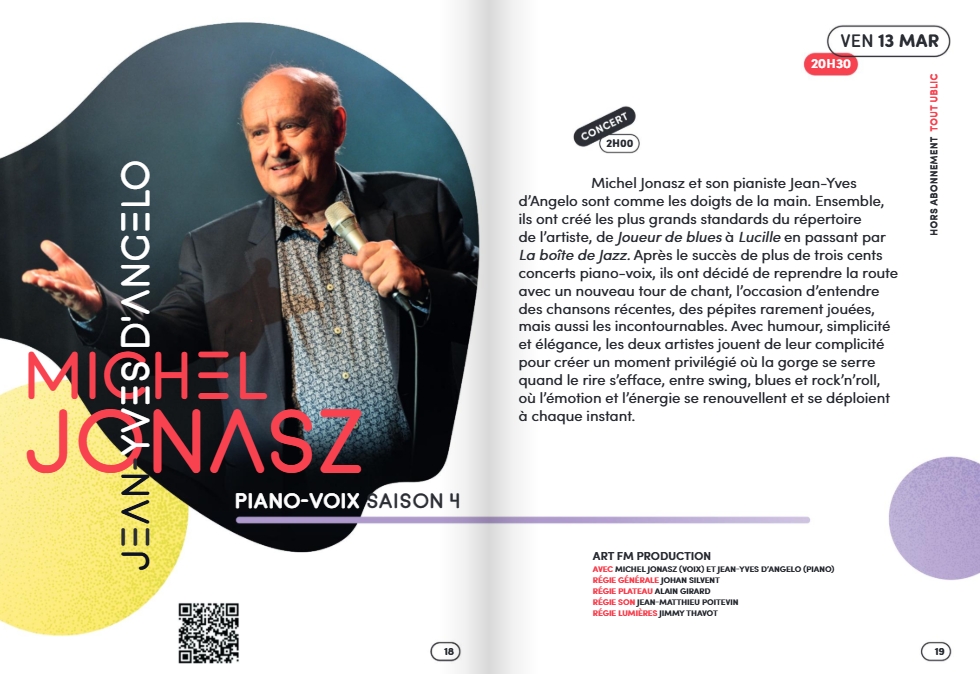 Avec humour, simplicité et élégance, Michel Jonasz et son pianiste Jean-Yves d'Angelo jouent de leur complicité pour créer un moment privilégié entre swing, blues et rock'n'roll Tarif unique : 25€ (prévente obligatoire) Photo : Jean-François Maillot