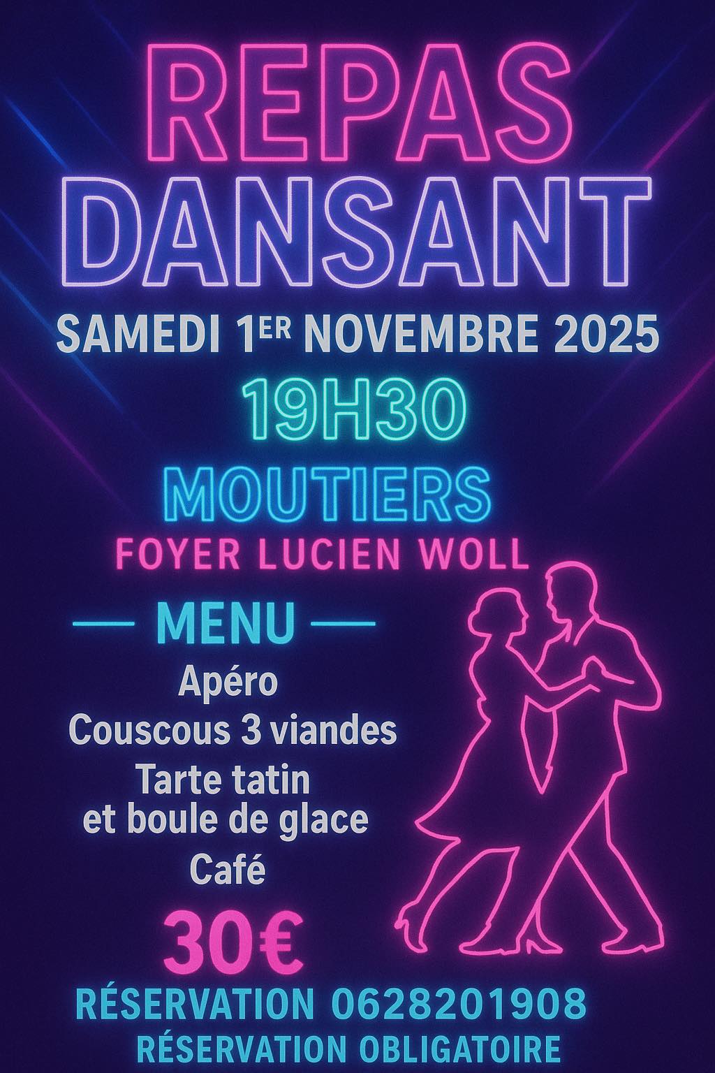 Soirée dansante proposée par l'association Animons Moutiers. Musique des années 80 à aujourd'hui. Réservation obligatoire